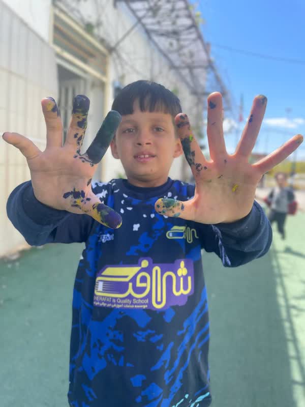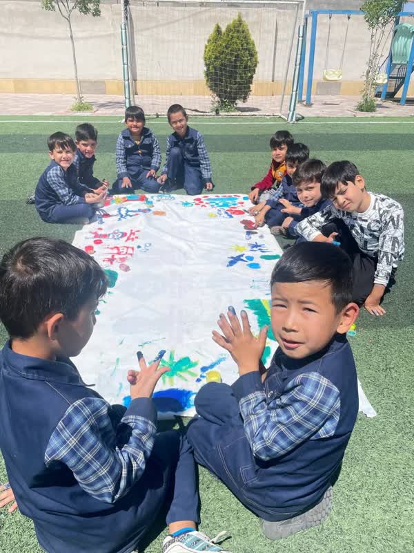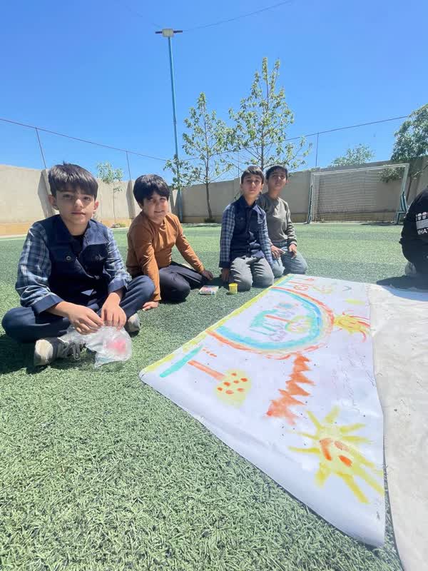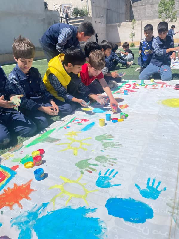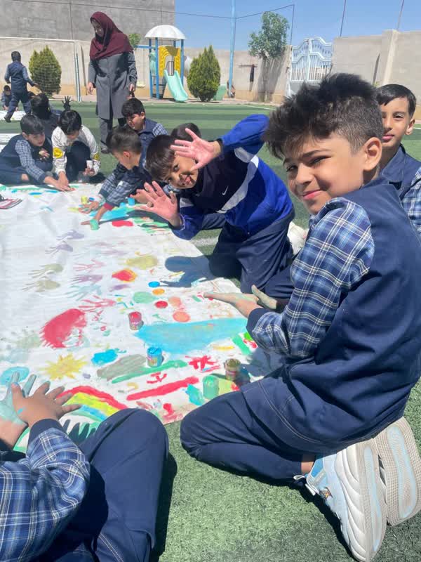 گزارش تصویری برگزاری جشنواره نقاشی همگانی با محوریت هوای پاک و حفظ محیط زیست با استفاده از رنگ انگشتی در محل چمن مصنوعی مجتمعغیر دولتی شرافت