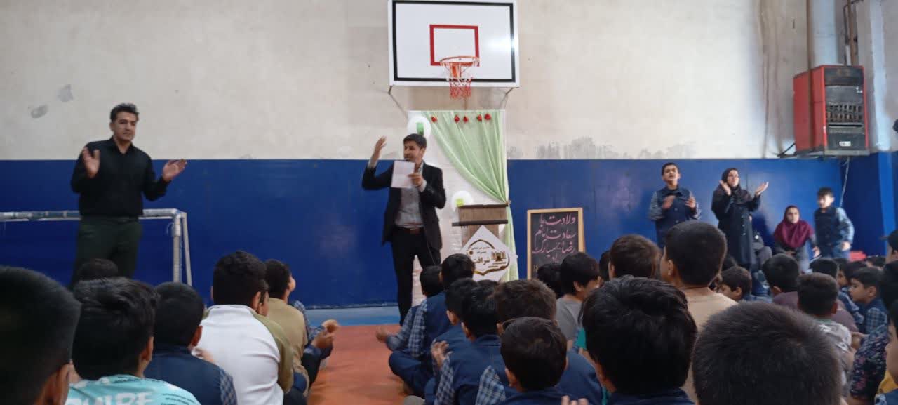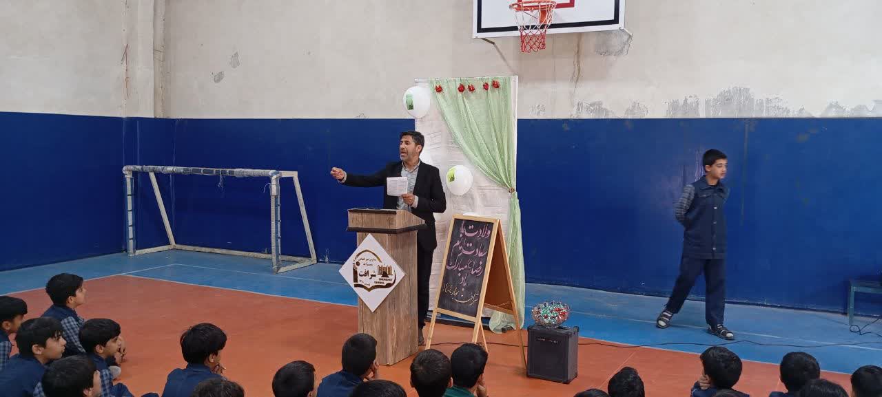 برگزاری جشن میلاد هشتمین اخترتابناک ولایت و امامت آقا علی بن موسی الرضا علیه السلام با حضور مداح ارجمند جناب آقای شعبانی ، مدیریت محترم ، معاونین و معلمین دبستان غیردولتی شرافت در تاریخ 17 اردیبهشت ماه 1404 در محل سالن ورزشی مجتمع شرافت